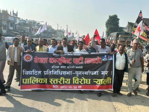 विघटित प्रतिनिधिसभा पुनःस्थापनाको माग गर्दै नेपाल कम्युनिष्ट पार्टी (एमाले) ले जिल्ला अधिकांश पालिकाहरुमा ¥याली सम्पन्न गरेको छ । लोकतन्त्रको जगेर्ना र संविधानको रक्षा गर्न एमाले सडकमा आएको नेताहरुको धारणा छ ।